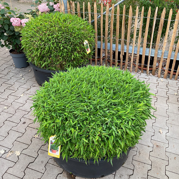 En lite lägre och mer kompakt och brett växande art av bambu. Klargrönt och tätt bladverk. Perfekt till häck men också fin i kruka eller som solitär i rabatt. Blir mellan 1-2 meter hög. Zon 1-3.